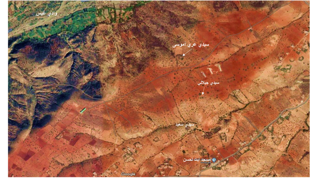 سمعت مرة من والدي أن سيدي علي أوموسى (عري باللهجة الريفية الخاصة ببني ورياغل) دفين الضريح الذي يوجد بدوار آيت عمر أبوكر بجماعة لوطا على مقربة من الضفة اليمنى لوادي غيس (انظر الصورة الجوية أسفله) هو من سيدي بوخيار بآيث حذيفة وهو ما تأكد لي بعد ان بحثت في نسب الشرفاء الورياغليين الغلبزوريين حيث أن سيدي علي هو ابن موسى بن أحمد بن الحاج ياسين بن سيدي عيسى (دفين الزاوية المعروفة بنواحي تماسينت) بن عبد الكريم بن عبد العزيز الورياغلي الغلبزوري (العالم المعروف وإمام القرويين في عهد أواخر الدولة المرينية – راجع المقال الخاص به بصفحة أعلام الشرفاء الورياغليين الغلبزوريين) بن العباس بن الفاضل (أو الفضيل) بن إبراهيم الأعرج (جد الشرفاء الورياغليين الغلبزوريين الادريسيين). .